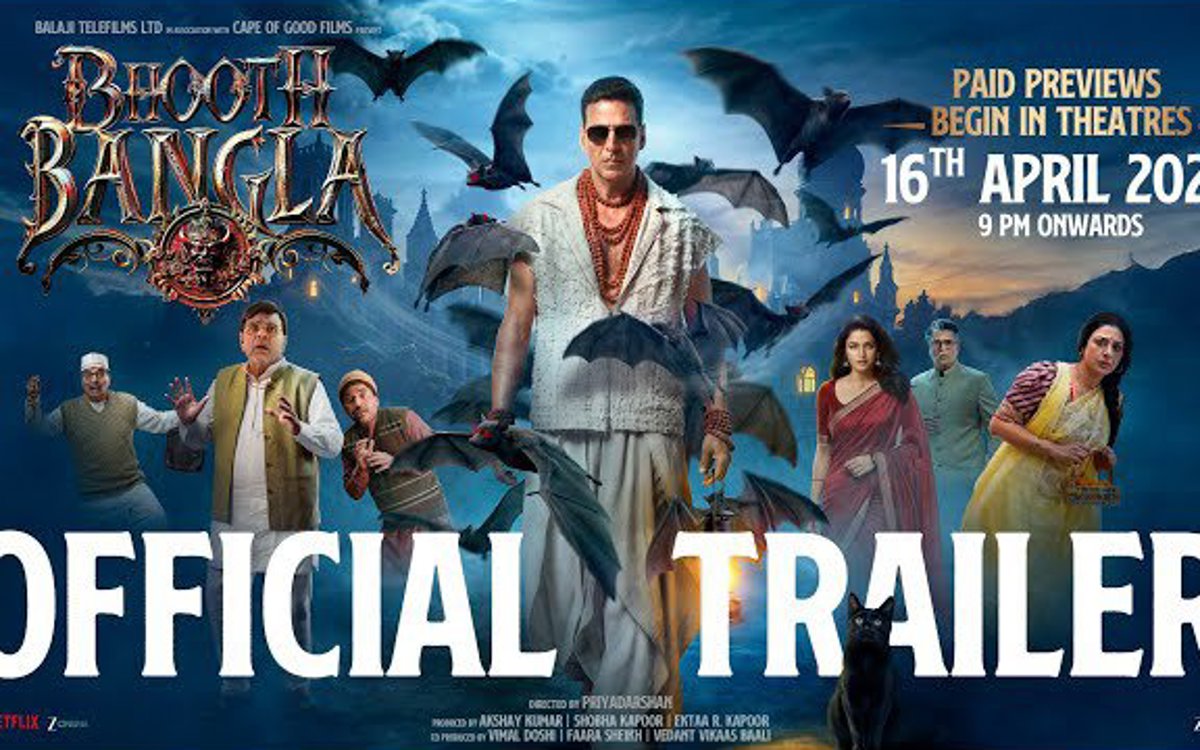 అక్షయ్ కుమార్ మరియు ప్రియదర్శన్ 'భూత్ బంగ్లా' చిత్రం కోసం మళ్లీ జతకట్టారు. ఏప్రిల్ 17, 2026న విడుదల కానున్న ఈ హారర్-కామెడీ మూవీ ట్రైలర్, ఒక దెయ్యాల బంగ్లా నేపథ్యంలో సాగే భయానక మరియు హాస్యభరితమైన కథను ఆవిష్కరిస్తోంది.